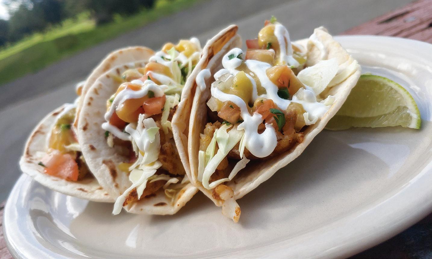 Fish taco topped with cabbage, fresh pico de gallo, sour cream and a mango habanero sauce.