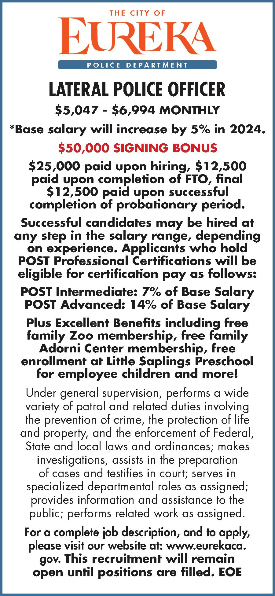 4 NORTH COAST JOURNAL • Thursday, May 4, 2023 • northcoastjournal.com ARCATA 5307 BOYD RD. Mon-Fri: 8:30AM-5:30PM Sat-Sun: 9AM-5PM (707) 408-1822 GARBERVILLE 690 THOMAS DR. Mon-Fri: 7AM-6PM Sat-Sun: 8AM-6PM (707) 923-2781 REDWAY 3082 REDWOOD DR. Mon-Fri: 8AM-6PM Sat-Sun: 9AM-5PM (707) 923-3002 WILLOW CREEK 41212 CA-299 Mon-Sat: 9AM-5PM Sun: 10AM-4PM (530) 629-3420 SEE STORES FOR DETAILS - RAFFLES TO WIN PRIZES & SOME VENDORS ON SITE 10% OFF 20% OFF EVERYTHING! except for ALREADY LOW PRICED - WATER TANKS, POWER EQUIPMENT, POWER TOOLS, LUMBER, SOIL, AMENDMENTS AND ANIMAL FEED MAY 5-7 SALE! COMMERCIAL CLASS A DELIVERY DRIVER $24 - $32 ONLINE APPLICATION AND JOB DETAILS AT: www.FoxFarm.com/Careers ALL WAGE OFFERS ARE BASED UPON THE EDUCATION AND EXPERIENCE OF THE CANDIDATE. GRAPHIC SUPPORT SPECIALIST $19.23 - $33.65 Northern UnitedHumboldt Charter School Tuition Free Public Charter School Onsite & Home Based Learning Options Earn College Credit with Dual Enrollment & Co-Enrollment TK - 12th grades Career & Technical Education (CTE) pathways nucharters.org 707-629-3634