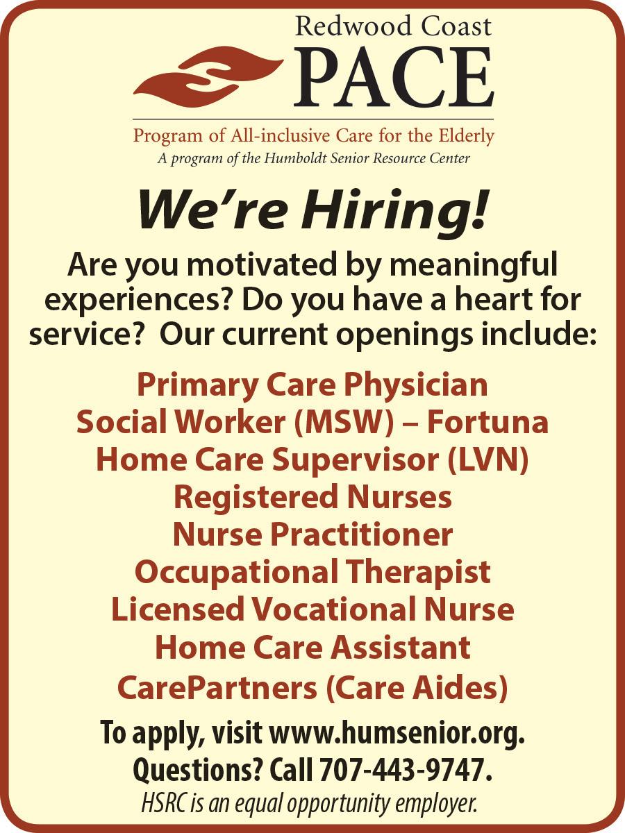 Apply at Office: 2575 Alliance Rd. Bldg. 9 Arcata, 8am-12pm & 1-4pm, M-F (707) 822-4104