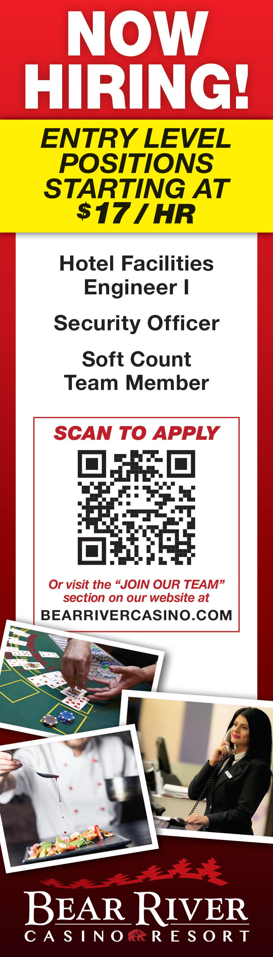 For job descriptions & employment applications, contact the Human Resource Department, Hoopa Valley Tribe, P.O. Box 218, Hoopa, CA 95546. Call (530) 625-9200 Ext. 23 or email dori.marshall@hoopainsurance.com or hr2@ hoopainsurance.com. The Tribeโs Alcohol & Drug Policy and TERO Ordinance Apply.