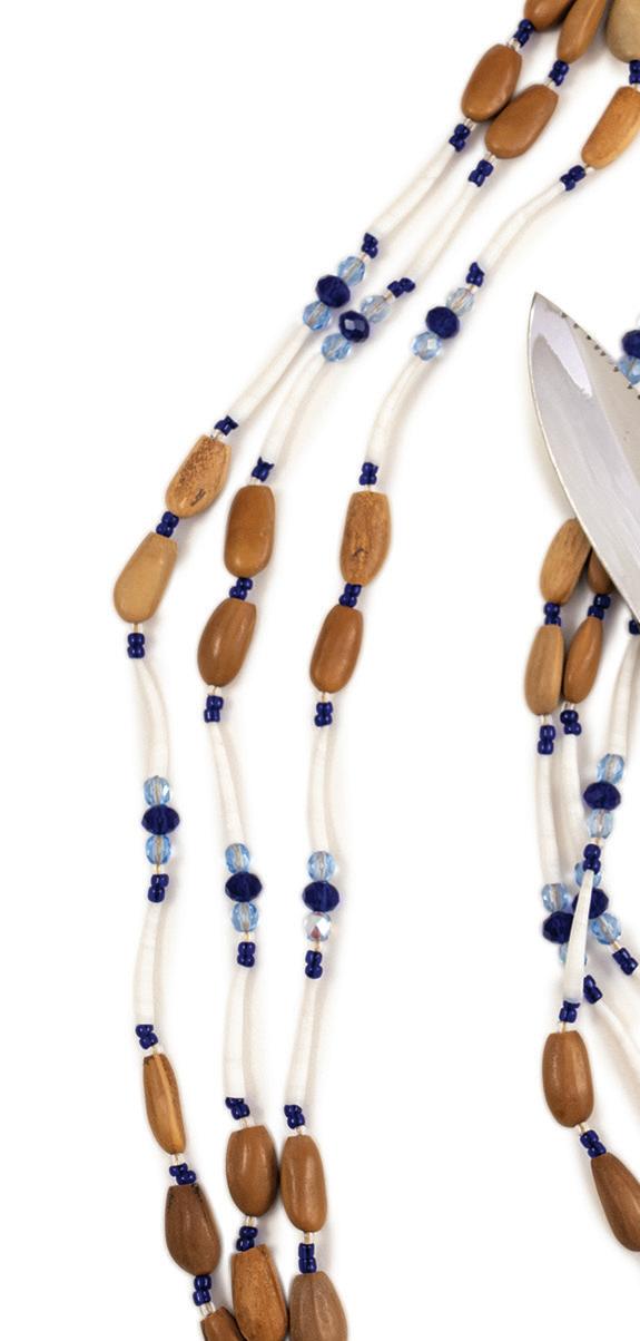 13. american indian art & gift shop Blue Pinenut dentalium necklace made by Ina Wilson, Yurok tribal member; high carbon steel custom knives with elk bone, buff alo horn or cocobolo wood handles by Mookooman Inini, Ojibwa tribal member