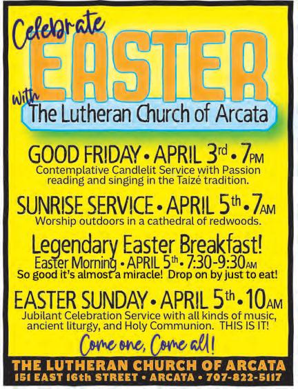 Celebrate Christ’s Resurrection with us through music and testimonies of His grace in our lives! Saturday, April 4, at 11:00 a.m. EUREKA SEVENTH-DAY ADVENTIST CHURCH 4251 F