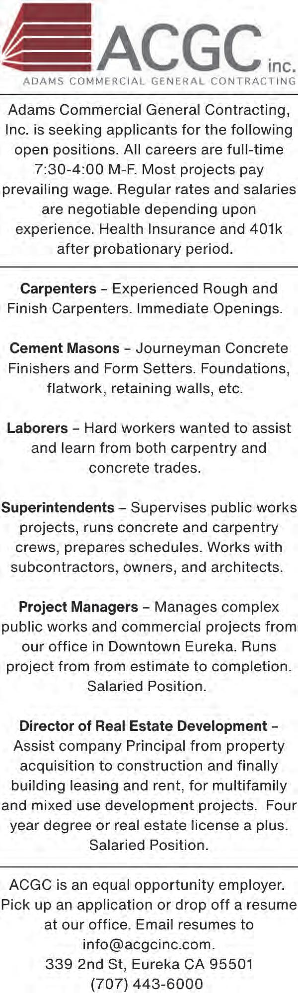95501 PO Box 1346, Eureka CA 95502 707 442-1400 northcoastjournal.com