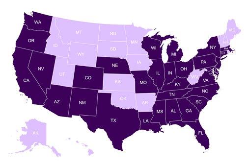 States are organizing to have consistency in governance statewide. As a result, there are 18 organized states: Southern and Northern California, Connecticut, Florida, Georgia, Illinois, Indiana, Maryland, Mississippi, North Carolina, New Jersey, New York, Ohio, Pennsylvania, Rocky Mountain Regional Coalition (includes Arizona, Colorado, Nebraska, New Mexico), Washington, South Carolina, Texas, Wisconsin, and Virginia (organizing).