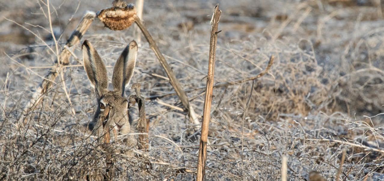 While still in need of a white-tailed jackrabbit for my dish, I leaned in the direction of what I know, familiar places where I remembered bumping rabbits while deer hunting or chasing sharp-tailed grouse — mostly open country with patches of knee-high, dark brush and the random buffaloberry patch where deer and other animals had flattened the understory to bed and get out of the wind.