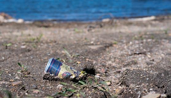 It is not uncommon to see garbage piling up around full trash containers. Styrofoam containers are not biodegradable, but are often found wedged in cattails, drifting or washed up on shore.