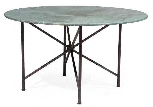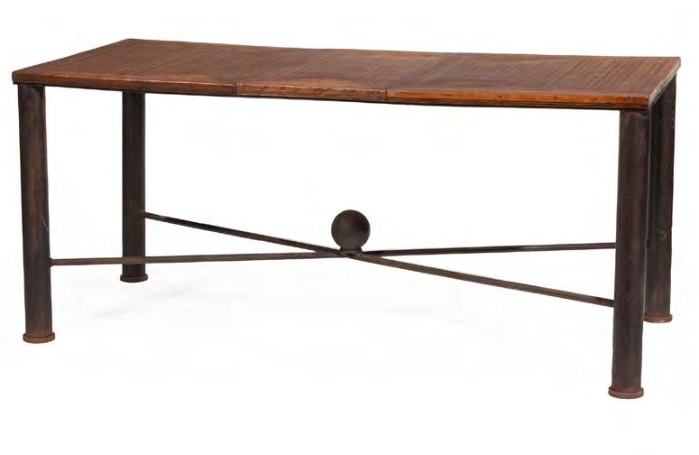 18.French Art Deco Wrought Iron and Parquetry Console Table, early 20th c., demilune top, scrolled base, h. 36 1/2 in., w. 55 1/2 in., d. 14 1/2 in. [$600/900]