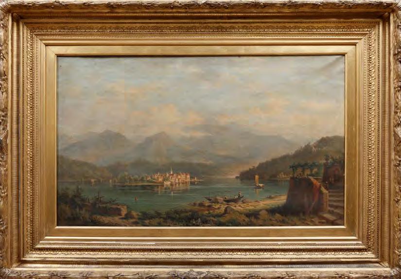 39. Frederick De Bourg Richards (American/Delaware, 1822-1903), “Lake Lucerne”, oil on canvas, signed lower left, 21 1/2 in. x 36 in., framed, overall 33 1/4 in. x 47 3/4 in. x 4 in. [$1500/2500]