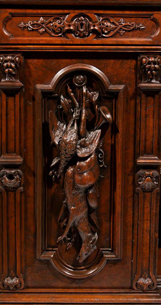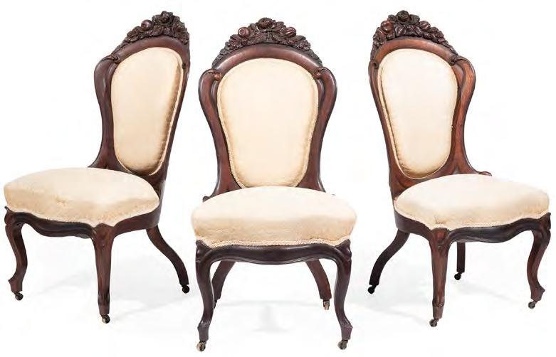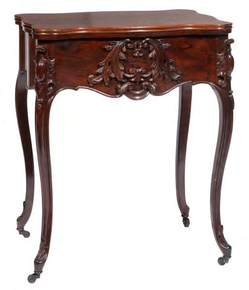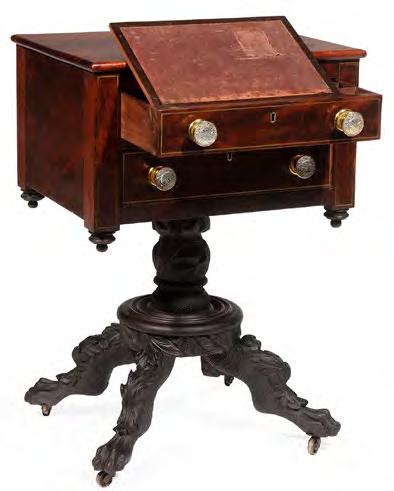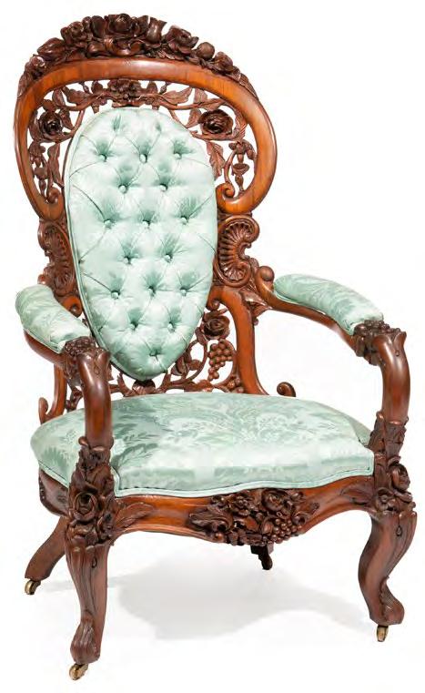 Among the museum-quality objects on offer from the Schoenberger Collection are an exceptionally rare Alexander Roux labeled sideboard (lot 334), John Henry Belter “Fountain Elms” seating furniture (lots 317-321), a New York Gothic tripartite armoire (lot 413) and Prudent Mallard bedroom furniture related to the well-known “Lansdowne” suite (lots 293-296).