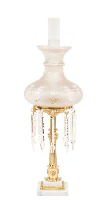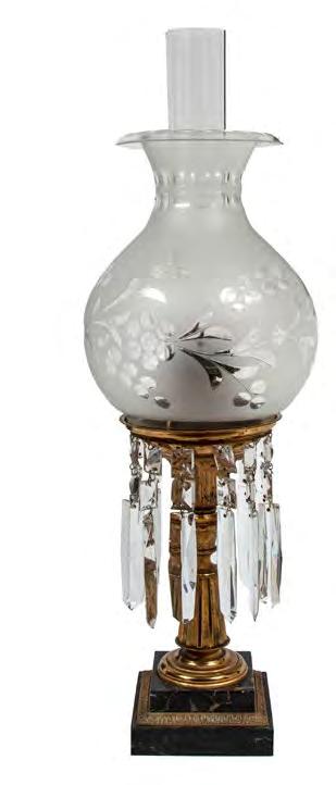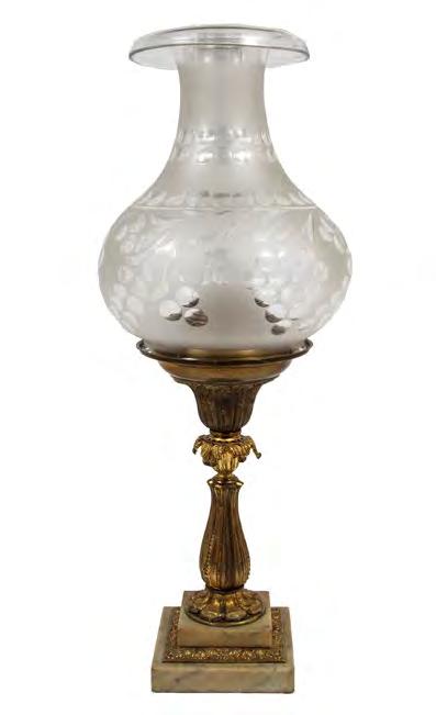 18. Large Louis XVI-Style Gilt Bronze Lantern, scrolled supports, hexagonal cage mounted with rams heads, fitted with engraved glass panels, h. 53 in., dia. 28 in. [$4000/6000]