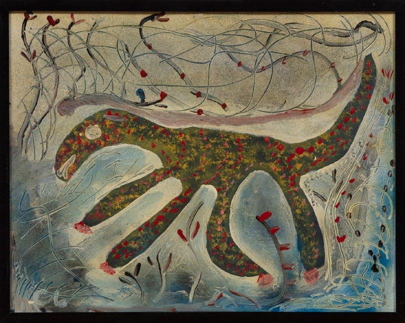 12. Mose Tolliver (American/Alabama, 1920-2006), “Diana Bird”, oil on panel, signed lower left, 18 5/8 in. x 24 in., unframed. [$500/700]
