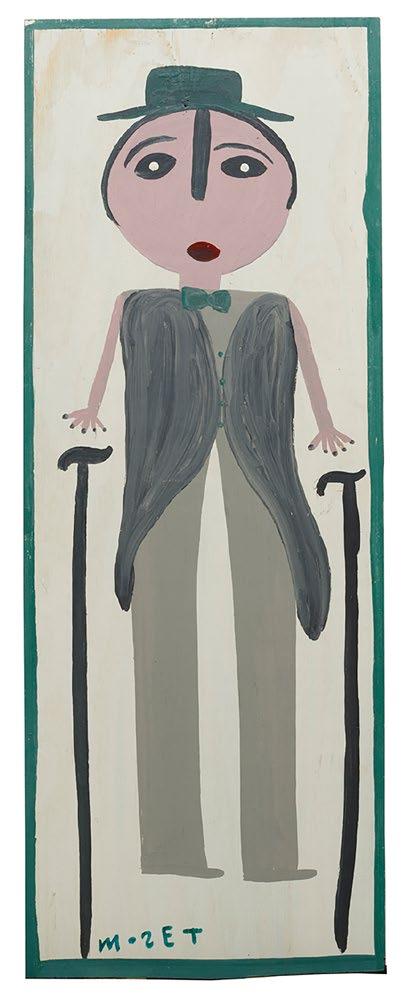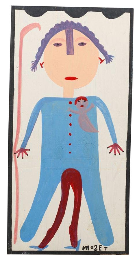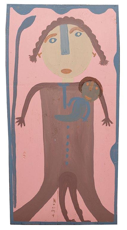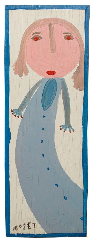 16. Mose Tolliver (American/Alabama, 1920-2006), “Lady from North Africa Looking for Food to Feed Her Children”, oil on panel, signed lower right, 32 in. x 16 in., unframed. [$500/700]