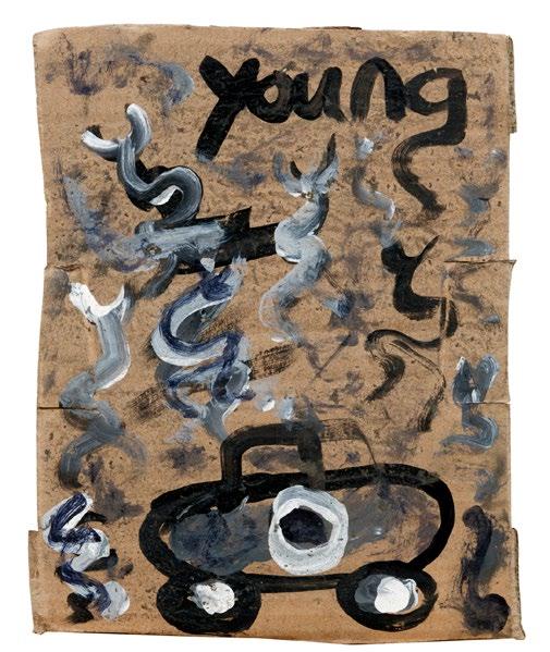 Ref.: Turner, Elisa. “Purvis Young: ‘God Put Me Here to be An Artist.’” The Jitney. February 7, 2022. www.jitneybooks.com. Accessed Jan. 30, 2023. “Purvis Young.” Main Street Gallery www.mainstreetgallery.com. Accessed Jan. 30, 2023.