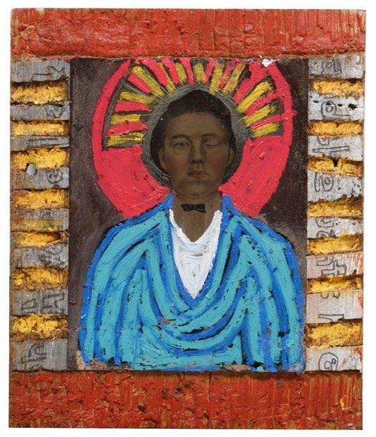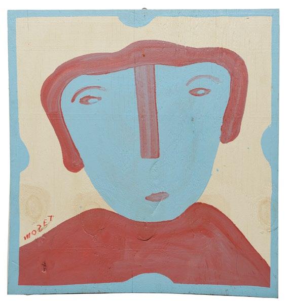 11. Mose Tolliver (American/Alabama, 19202006), “Fierce Self Portrait”, oil on panel, signed lower left, 24 1/4 in. x 17 1/2 in., unframed. [$500/700]