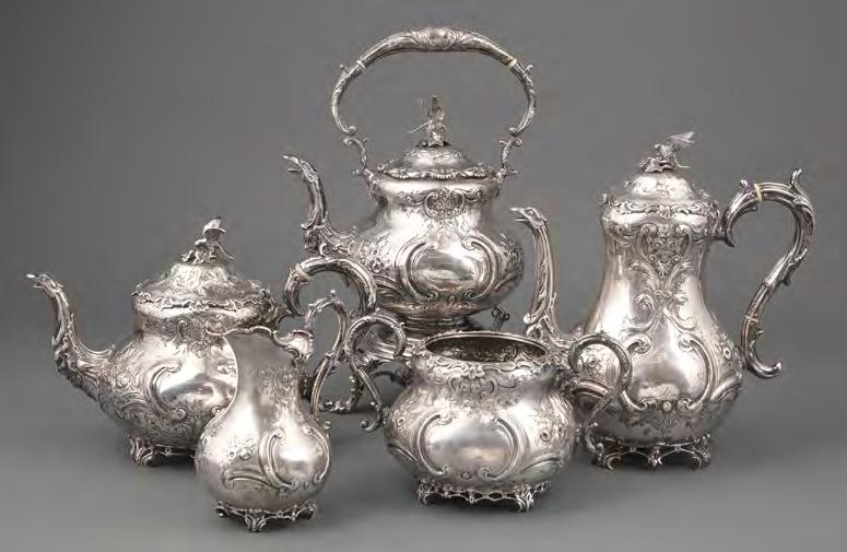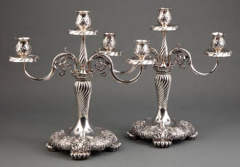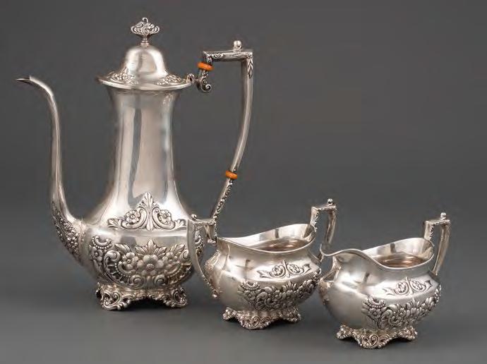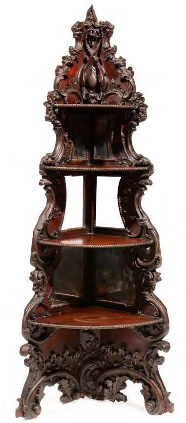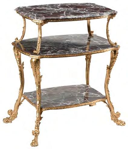 9. Louis XV-Style Gilt Bronze Three-Tier Desserte, shaped marble tops, acanthine scrolled supports, paw feet, h. 41 in., w. 37 in., d. 24 in. [$1500/2500]