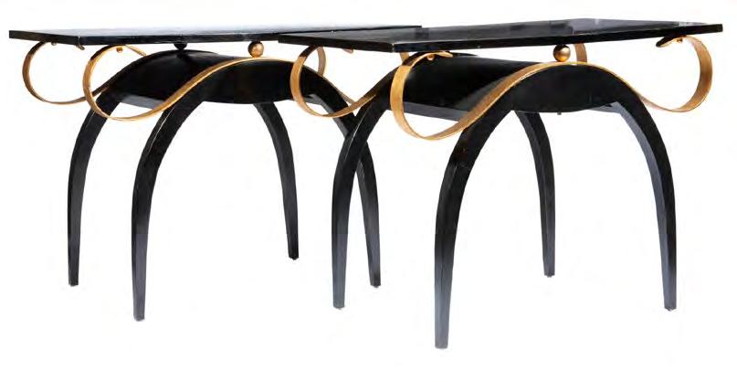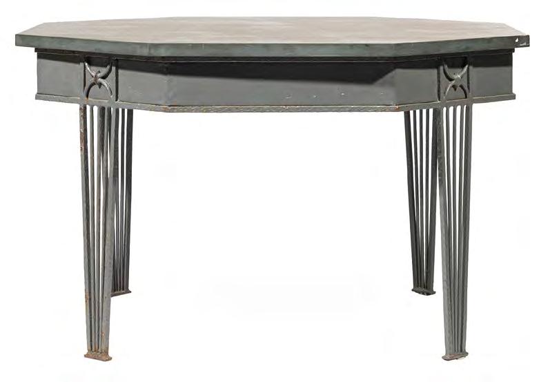 44. Directoire-Style Painted Iron and Slate Top Dining Table, octagonal top, conforming frieze, tapered spindled legs, flat bar feet, h. 29 5/8 in., w. 50 in., d. 49 1/2 in [$1000/2000]
