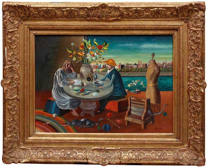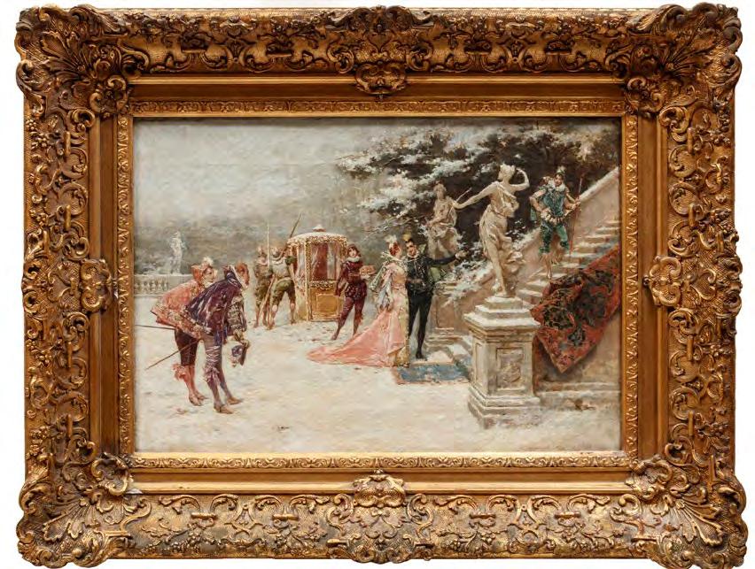 26. Continental School, 19th c., “Winter Palace Scene”, oil on canvas, unsigned, 13 in. x 19 in., framed, overall 20 3/4 in. x 26 1/2 in. x 4 in. [$400/600]