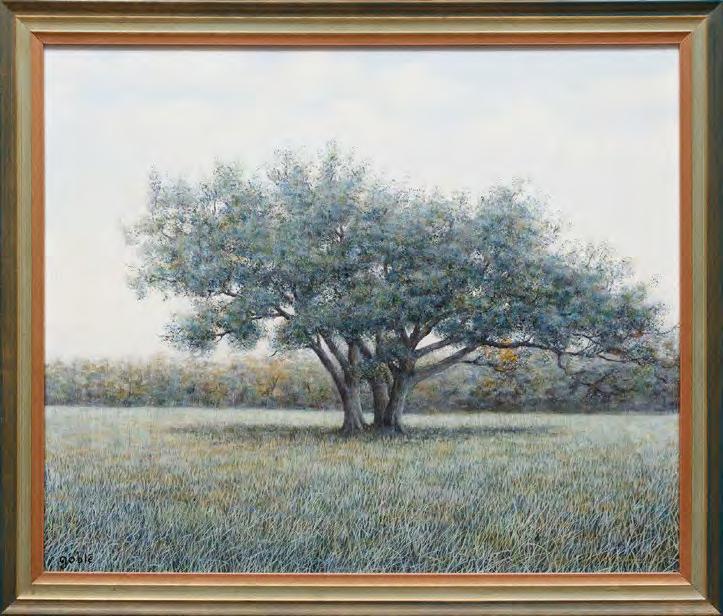 28. Continental School, 19th c., “Village Road with Water Mill”, oil on canvas, faintly inscribed “m. hobbema / 1663” lower left, 32 in. x 47 1/2 in., framed, 36 3/4 in. x 52 1/4 in. x 2 1/4 in. [$2000/3000]