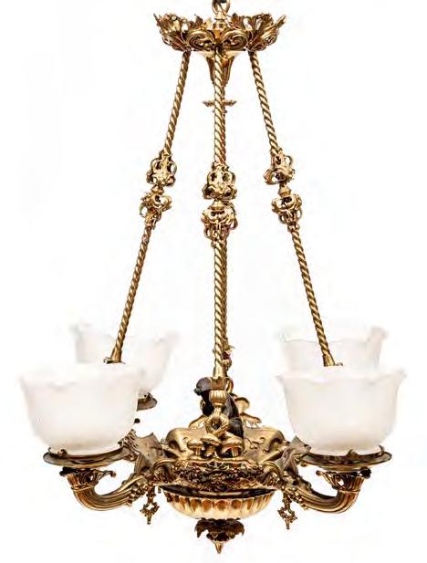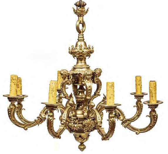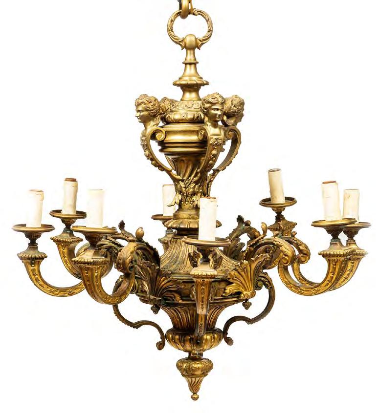 55. Louis XVI-Style Bronze EightLight Chandelier, standard with female busts, foliate arms, h. 41 in., dia. 34 in. [$1500/2500]