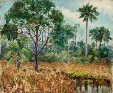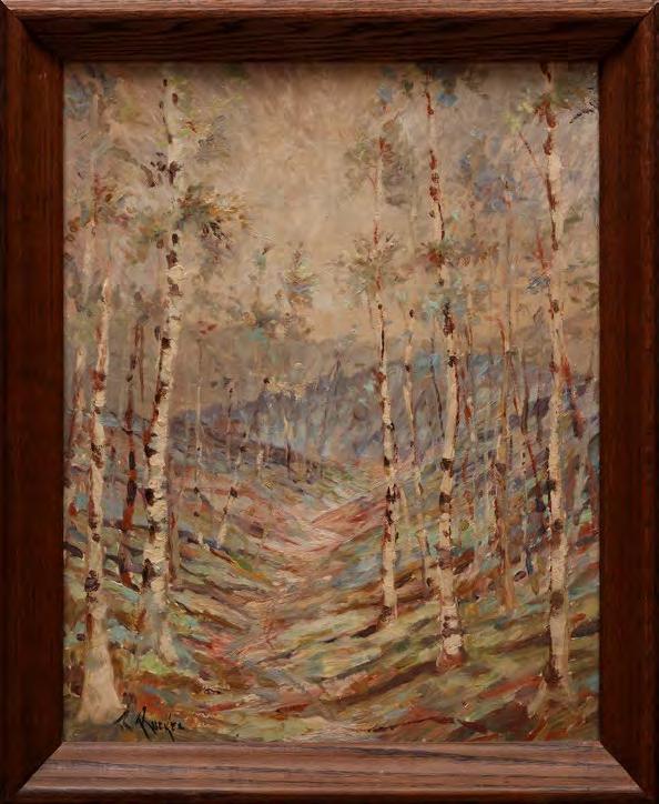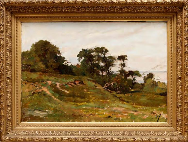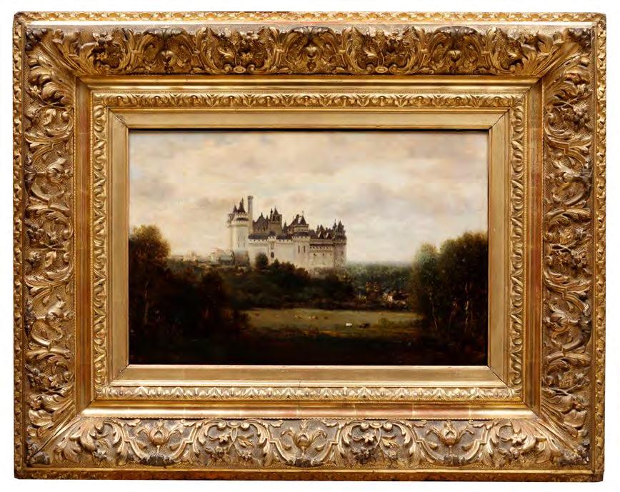 33. Gilbert Munger (American, 1837-1903), “Castle on the Hill”, oil on panel, signed lower left, 14 1/2 in. x 21 3/8 in., framed, overall 27 3/8 in. x 34 1/2 in. x 3 3/4 in. [$800/1200]