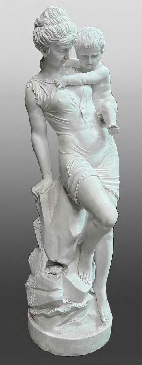 43. Large Marble Figural Group of Woman and Child on the Seashore, h. 68 1/2 in. [$3000/5000]