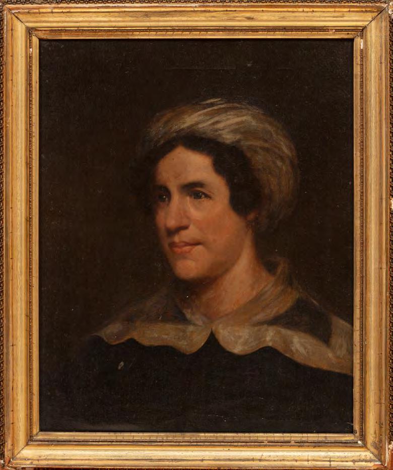 23. Thomas Couture (French, 1815-1879), “Portrait of a Young Woman in Profile”, oil on canvas, initialed mid-right, “Roberts Art Gallery, Toronto” plaque on reverse of frame, 19 in. x 16 5/8 in., framed, 26 3/4 in. x 24 1/2 in. x 2 1/2 in. [$2500/3500]