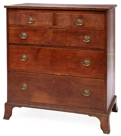 47. Antique Italian Neoclassical Burl Walnut Secretaire, stepped hinge top, drop-front writing drawer with fitted interior, over four drawers, conforming bracketed base, h. 49 in., w. 66 in., d. 27 1/2 in. [$2000/3000]