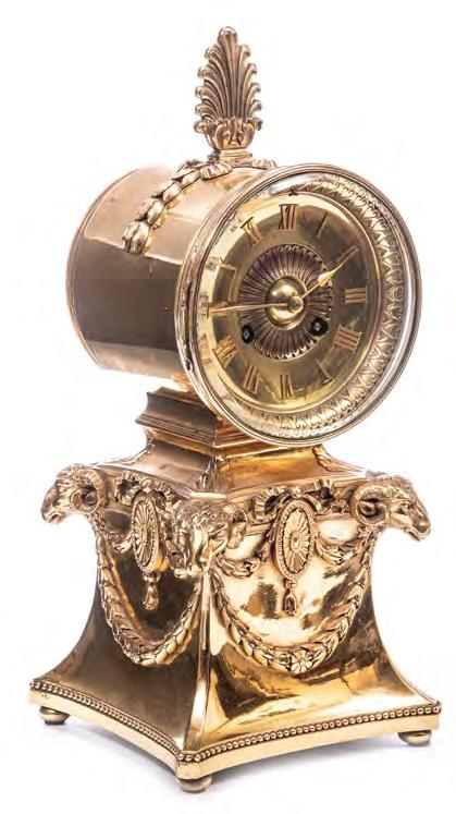 18. Antique Empire-Style Brass Clock, 19th c., striking bell movement marked “GS Medaille d’Or”, h. 3 3/4 in., w. 5 1/2 in., d. 6 in. [$700/1000]