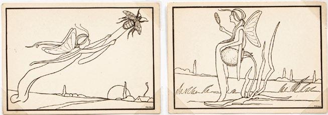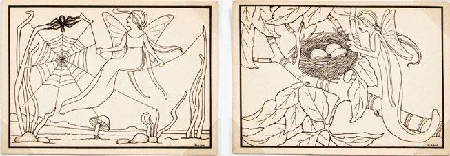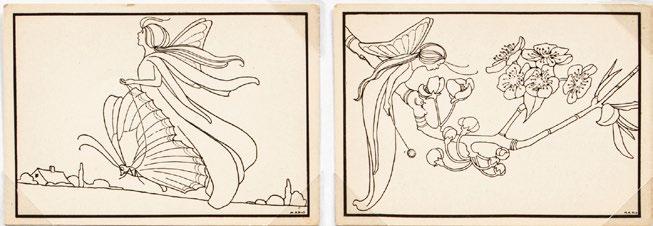 2. Ella Wood (American/Louisiana, 1888-1976), “Mithras Maid Proclamation”, 1921, ink and watercolor on paper mounted to board, signed mid-right, dated lower center, 18 7/8 in. x 12 1/2 in., framed, overall 19 1/2 in. x 13 in. x 1 in. [$400/600] 3. Ella Wood (American/Louisiana, 1888-1976), “Momus Maid Proclamation”, 1922, ink and watercolor on paper mounted to board, unsigned, dated lower center, 20 1/4 in. x 12 1/2 in., framed, 21 in. x 13 1/4 in. x 7/8 in. [$400/600]