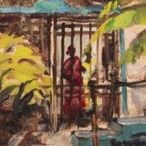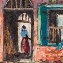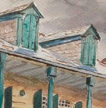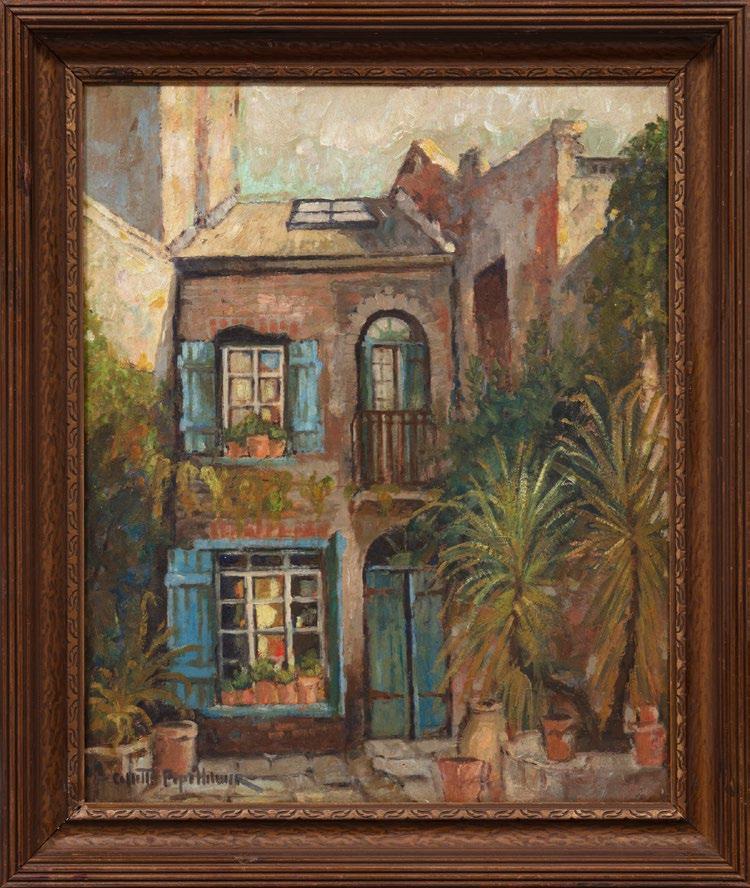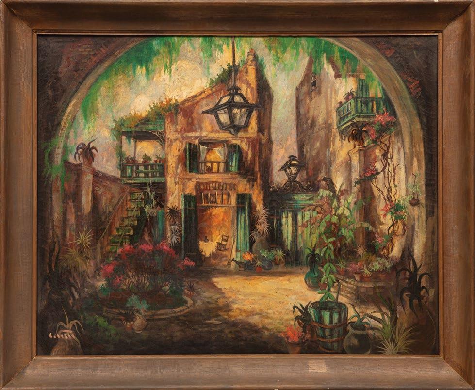 herself at the center of the burgeoning artistic community in the city. Her love of the historic buildings, cobblestone streets, and plant-filled courtyards inspired her to depict many scenes of French Quarter daily life. She has said of her early years in the city: “I didn’t have a great talent or the genius for it, but I did have the desire. It was love at first sight, even before I had seen a patio or mounted a creaky stair in the old houses I love so much.”