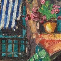 13. Martha Wright Ambrose (American/Louisiana, 1914-2000), “Art and Craft Royal Street”, oil on canvas board, signed lower right, artist name and title on reverse of frame, 9 in. x 7 in., framed, overall 11 1/2 in. x 9 1/2 in. x 1 in. [$800/1200]