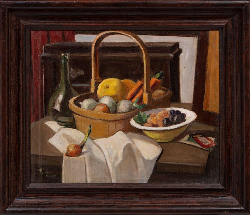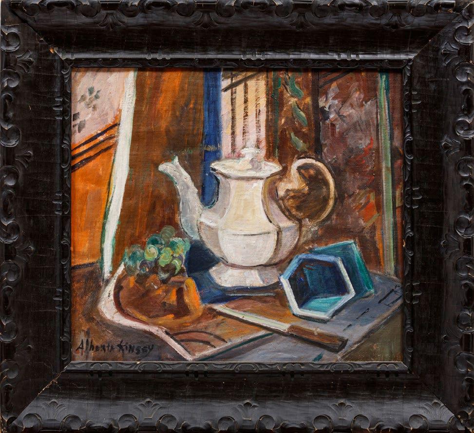 12. Alberta Kinsey (American/Louisiana, 1875-1952), “Abstract Still Life with Teapot and Grapes”, oil on canvas, signed lower left, 16 7/8 in. x 19 in., framed, overall 24 in. x 26 1/4 in. x 1 3/4 in. [$1000/1500] Landmark New Orleans Manse.” Elle Decor, Mar. 2009, p. 98. 11. Alberta Kinsey (American/Louisiana, 1875-1952), “Kitchen Still Life”, oil on canvas, signed lower left, 20 1/4 in. x 25 in., framed, 27 5/8 in. x 32 3/8 in. x 2 1/2 in. [$1500/2500] Alberta Kinsey with her paintings on exhibit at Pirate's Alley, in New Orleans. Barkemeyer, Erol (Photographer) STATE LIBRARY OF LOUISIANA Alberta Kinsey