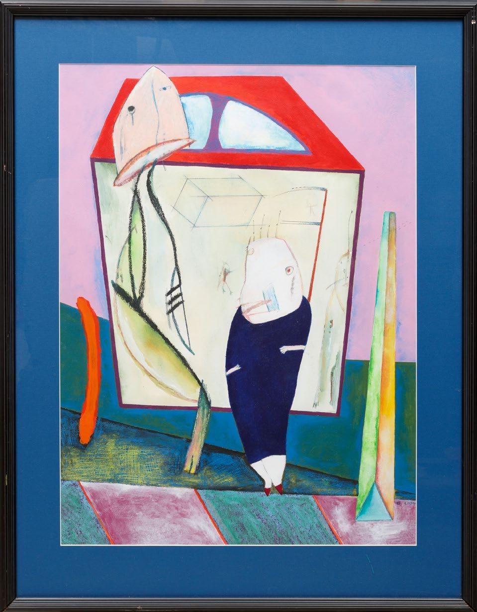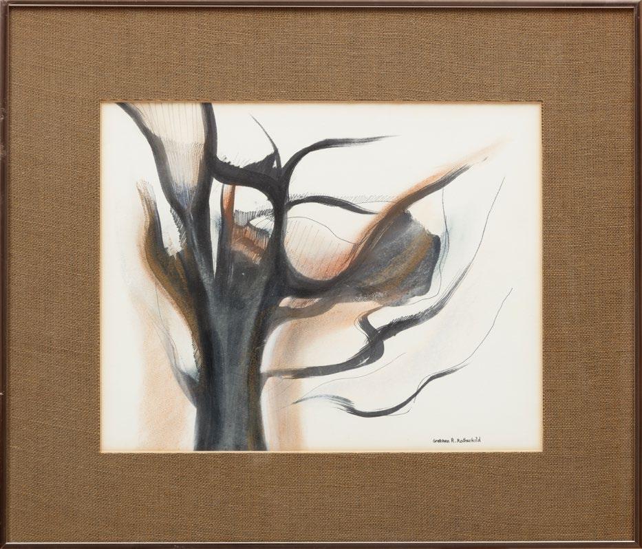 10. Ethel Edwards (American/Louisiana, 1914-1999, active Newcomb College, 1933-1936), “Variations on a Dead Bird #5 (First Series #14)”, watercolor on paper, signed lower right, titled en verso, signed and titled on backing board, 11 in. x 8 1/4 in., framed, overall 14 1/8 in. x 11 1/4 in. x 1 1/4 in. [$200/300]