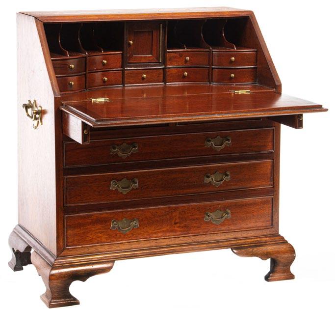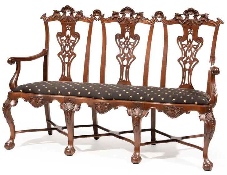 31. Antique American ChippendaleStyle Carved Mahogany Triple Chairback Settee, foliate scrolled crest, entwined splats, scrolled arms, foliate cabriole legs, ball and claw feet, h. 44 1/2 in., w. 65 in., d. 21 in. [$700/1000]