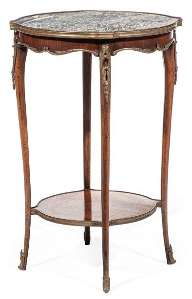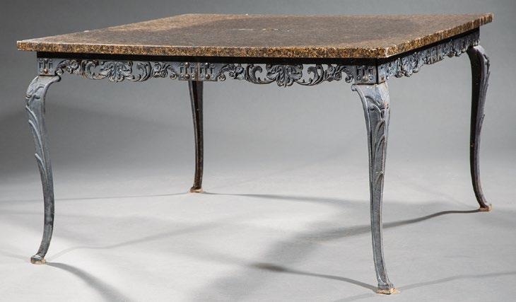 8. American Rococo Carved Rosewood Duchesse Dressing Table, mid-19th c., probably Alexander Roux, New York, mirror with floral surround, acanthus supports, serpentine marble top, frieze drawer carved with flower basket, fitted interior, floral scrolled cabriole legs, X-stretcher centered by a lobed finial, h. 73 in., w. 45 in., d. 24 in. [$3000/5000]
