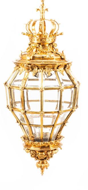 27. American Brass and Glass Hall Lantern, four-light fixture, h. 31 in., dia. 14 in. [$300/500]