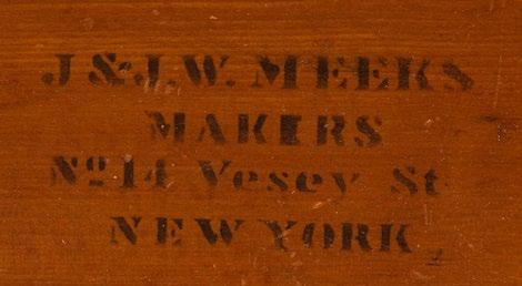 17. American Rococo Carved Rosewood Armoire, mid-19th c., labeled “J. & J.W. Meeks Makers, No. 14 Vesey St., New York”, lobed finials, arched beaded crest centered by a foliate cabochon medallion, acanthine brackets, mirrored door, chamfered base with deep drawer, bracket feet, h. 99 in., w. 50 in., d. 25 in. [$5000/7000]