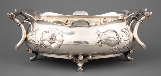 43. Shreve & Co. “Fourteenth Century” Pattern Sterling Silver Bowl, active San Francisco, 1852 to present, bell mark for 1909 to c. 1922, period script monogram, h. 3 in., dia. 8 in., wt. 9.95 troy ozs. [$300/500]