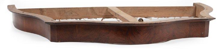 10. American Rococo Carved Rosewood Half Tester Bed, mid-19th c., New Orleans, stepped and beaded serpentine tester, tapered posts, paneled headboard centered by floral carving, foot board with cabochons, h. 112 in., l. 79 in., w. 62 1/2 in. [$4000/6000]