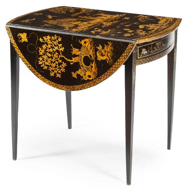 34. American Classical Carved, Ebonized, and Gilt-Stenciled Mahogany Work Table, c. 1830, New York, two drawers, acanthus carved support with hipped legs and hairy paw legs, h. 27 1/2 in., w. 22 in., d. 18 in. [$600/900]