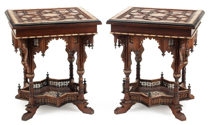 Notable among the pieces offered is lot 291, a New York rosewood, parcel ebonized, marquetry and bronze-mounted parlor cabinet in the style of Pottier & Stymus.