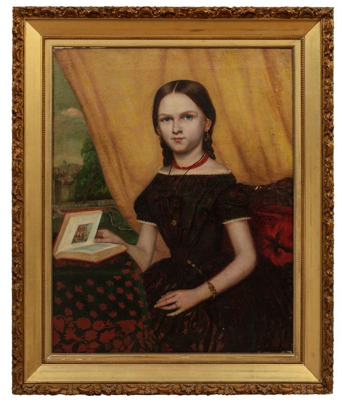 of Marguerite”, oil on canvas, unsigned, “M.F. Haas & Son, Brooklyn, NY” framer label on reverse of frame, 34 1/8 in. x 27 1/8 in., framed, overall 41 1/2 in. x 43 1/4 in. x 2 1/8 in. [$1000/1500]