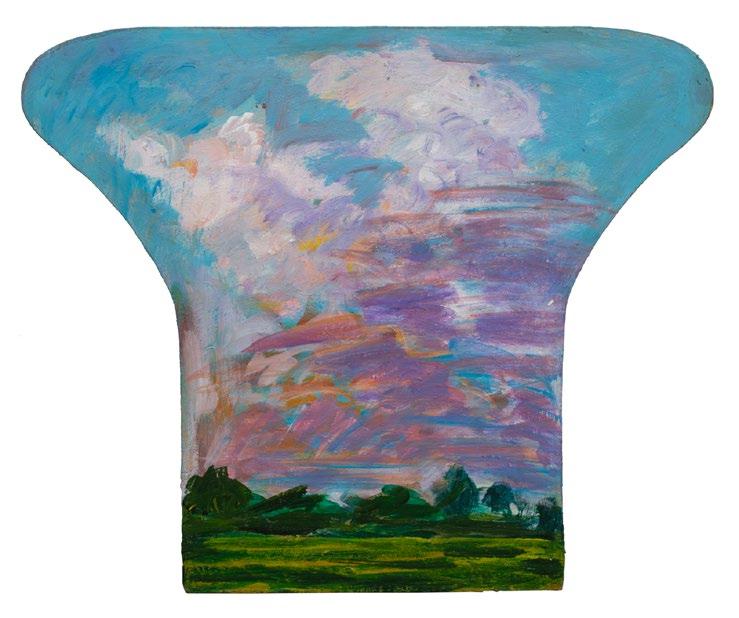 Between 1934 and 1936, Castleden worked on a commission for Frank Evans, owner of the D.H. Holmes Department Store on Canal Street. He, along with fellow artist Mazie Howell, created a series of murals shaped to fit the transoms and niches of the store’s famous restaurant, largely focused in subject on the plantations, bayous and fishing camps of South Louisiana. Seven of those panels now reside in the collection of the Louisiana State Museum. In “Hyacinths” of 1936 offered here, Castleden depicts an atmospheric landscape in monumental proportion, the largest and most impressive canvas by the artist offered at auction to date. Ref.: Kheel, Claudia. “George Castleden.” 64 Parishes. Aug. 30, 2013. www.64parishes.org. Accessed July 17, 2023.