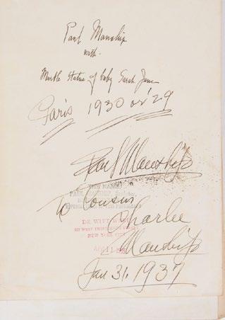 29. Vitry, Paul, Paul Manship Sculpteur Americain, Paris, Editions de la Gazette des Beaux-Arts, 1927, with 80 plates, signed and personalized by Paul Manship; together with Ward De Witt (American/ New York, d. 1937), “Paul Manship”, c. 1930 negative creation date, 1935 print date, gelatin silver print, “De Witt Ward, New York” artist stamp and stamped print date en verso, signed, dated and personalized by Paul Manship and “Paul Manship” stamp en verso, 9 1/8 in. x 7 in., unframed. [$500/700]
