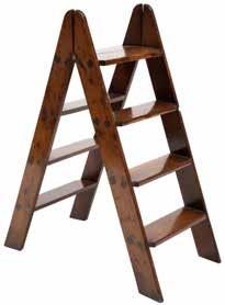 23. Antique English Brass Mounted Yewwood Folding Library Ladder, 20th c., four steps. open h. 35 in., w. 15 1/2 in., d. 30 1/2 in. [$300/500]