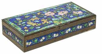 413. Collection of Chinese Cloisonne Enamel Objects, incl. large vase with “antiques” and auspicious emblems, h. 15 1/4 in.; covered jar with flowering branches, base marked “CHINA”, h. 8 1/2 in.; and charger with birds and peony, dia. 12 in. (3 pcs.) [$300/500]