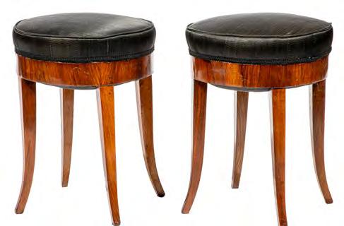 37. Pair of French Restauration Carved Mahogany Barrel-Back Bergères, early 19th c., rounded crest rail, scrolled terminals, foliate-carved uprights, sabre legs, h. 32 1/2 in., w. 21 in., d. 23 in. [$800/1200]