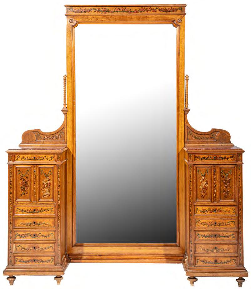 32. Charles X Birdseye Maple, BronzeMounted and Ebonized Mirror, early 19th c., h. 28 1/2 in., w. 28 1/2 in. [$700/1000]
