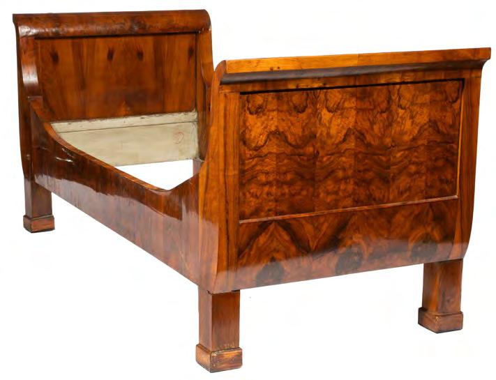7. Georgian-Style Inlaid Burl Walnut Slant Front Desk, 19th c., fitted interior, two bead molded drawers flanked lopers, above three bead molded drawers, bracket feet, h. 39 in. w. 28 1/2 in., d. (closed) 16 1/2 in., d. (open) 28 in. [$700/900]