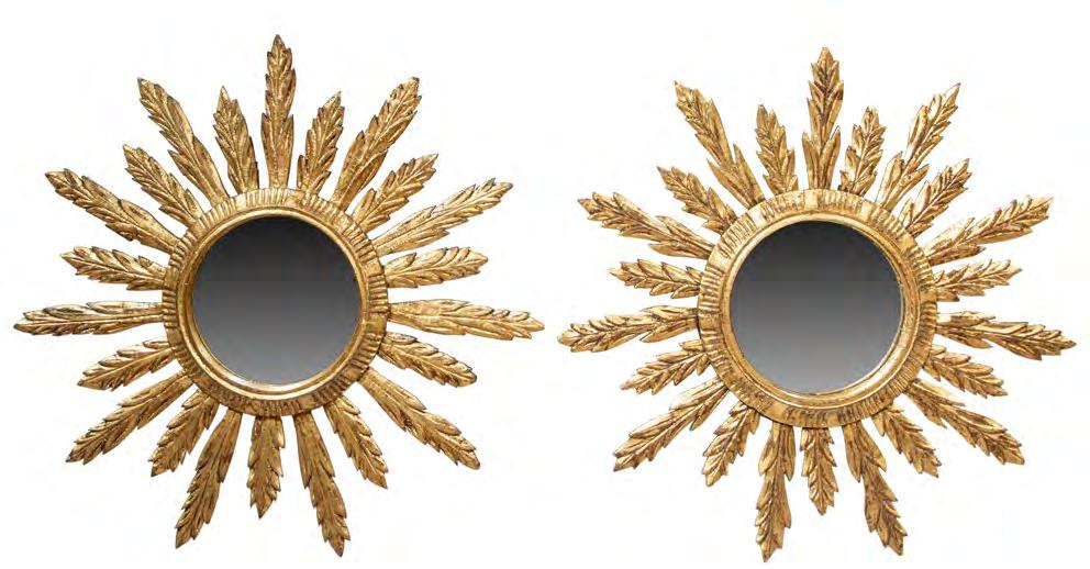 31. Pair of Line Vautrin-Style Giltwood “Sun King” Mirrors, 20th c., dia. 29 in. [$700/1000]